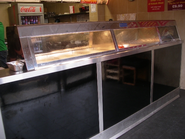 FULLY EQUIPED SHOP WITH 3 PAN FRYING RANGE, DOUBLE DECK PIZZA OVEN, KEBAB MACHINE, DOUGH MACHINE, DOUGH ROLLER, RUMBLER, CHIPPER, FISH FRIDGE, FREEZERS, FRIDGES, SALAD FRIDGE, 6 POT BAN MARIE, DRINKS CHILLER,TILL ETC.
