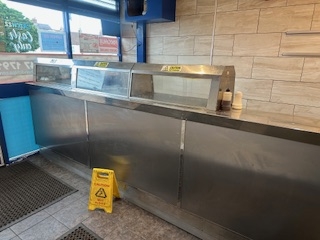FULLY EQUIPED WITH 3 PAN FRYING RANGE, RUMBLER, CHIPPER, KEBAB MACHINE, DOUGH MACHINE, PIZZA CONVEYOR OVEN, FRIDGES, FREEZERS, TILL, ETC